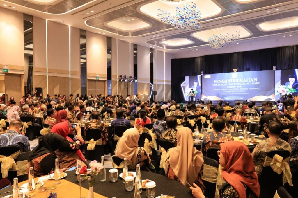 DISKOMINFO, LAMPUNG BARAT — Wakil Bupati Lampung Barat, Drs. Mad Hasnurin, menghadiri acara Penganugerahan Pengukuran Indeks Kualitas Kebijakan (IKK) Tahun 2025 yang diselenggarakan oleh Lembaga Administrasi Negara (LAN) RI di Grand Ballroom Novotel Samator Surabaya, Selasa (25/11/2025).