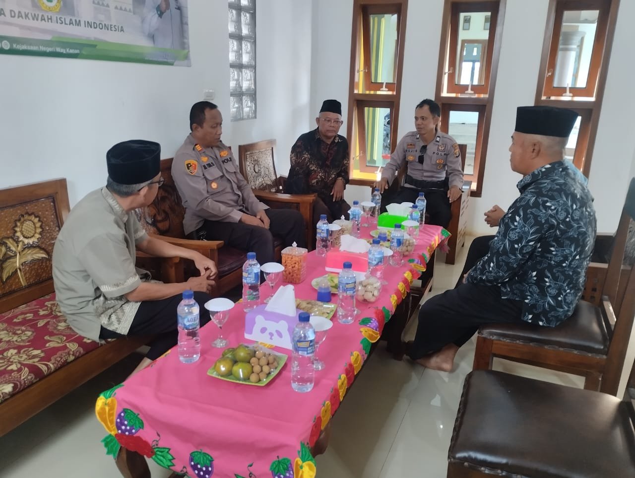 Dalam kunjungan kegiatan itu, Kapolsek didampingi Kanit Binmas Aiptu Mujib bersama personel Polsek Gunung Labuhan disambut baik oleh Ketua PC LDII Kecamatan Gunung Labuhan Kabupaten Way Kanan Zulkarnain dan jajaran pengurus, serta ketua pondok Almansurin sdr.Katimin